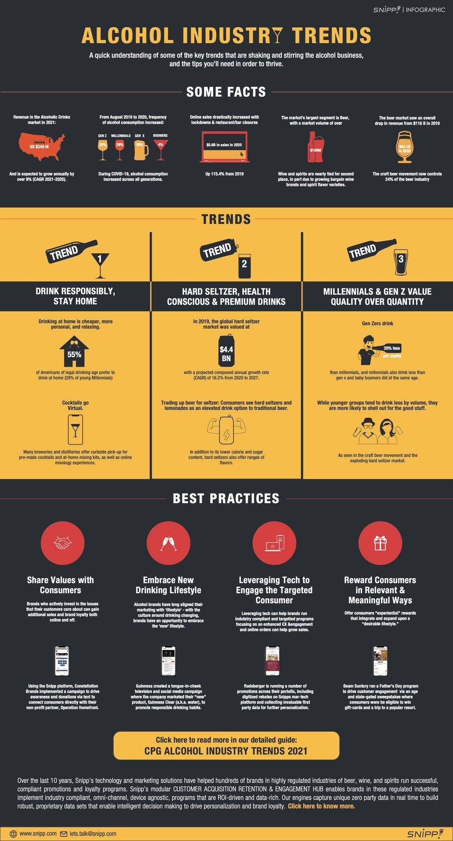 Snipp’s technology and marketing solutions have helped brands in highly regulated industries of beer, wine, and spirits run successful, compliant promotions and loyalty programs. Snipp enables implementation of industry compliant, omni-channel, programs that are ROI-driven. Contact us to learn more.