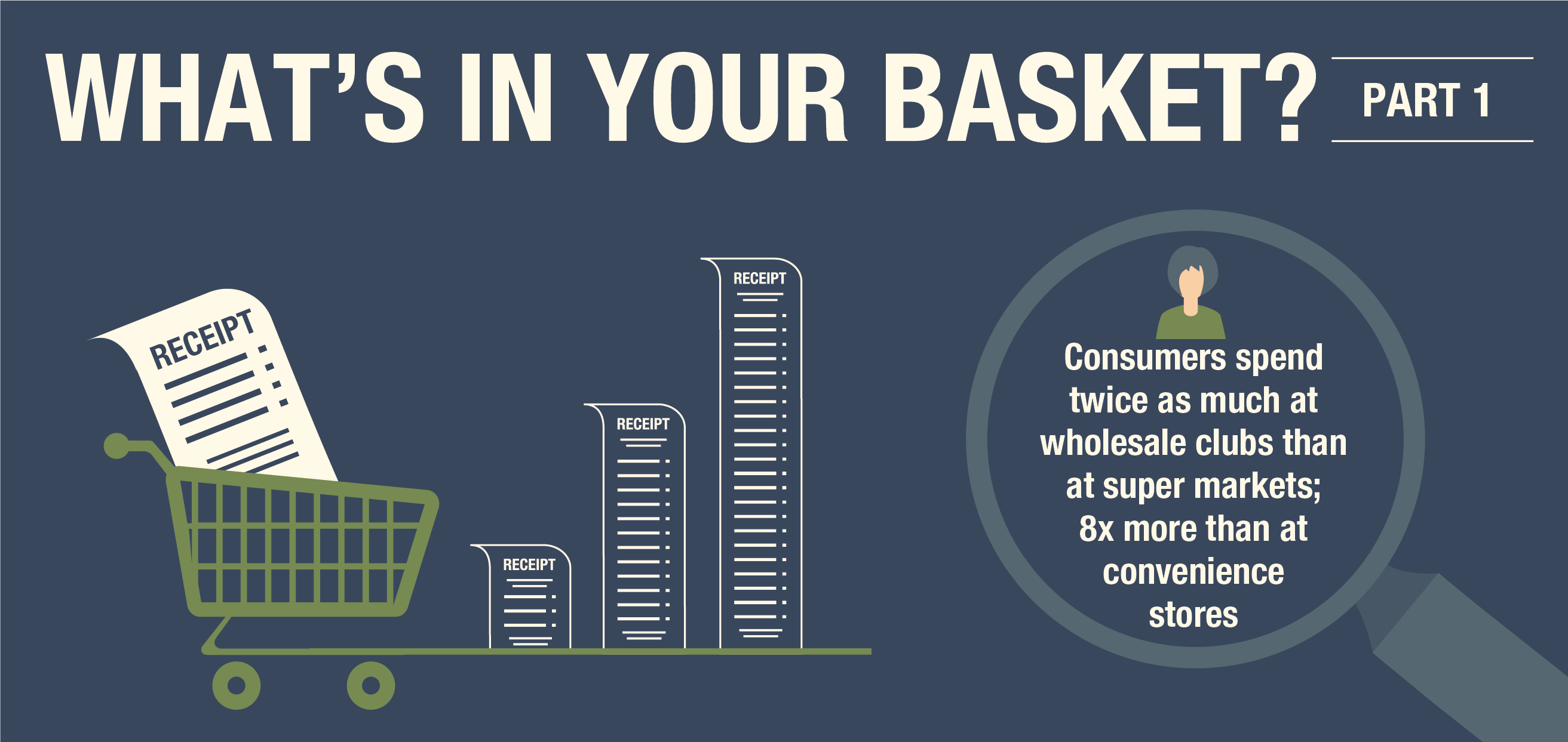 It’s very seldom that a CPG brand has any access to a store POS system, a fact that severely limits the kind of data they can access. But this data often contains some of the important metrics a brand needs; insight into how different retail channels are contributing to overall revenue. At the end of the day, a marketing strategy is only as good as the revenue it generates, so understanding the cause and effect relationship between consumer spend and marketing is essential for a brand’s survival. In this inaugural “What’s In Your Basket”, we show you how data from receipts can inform brands how the spending habits of consumers changes between two popular retail channels at very different ends of the spectrum: wholesale clubs and convenience stores. We’ll also show how brands can utilize this knowledge to actively adapt and win and an increasingly competitive retail environment.