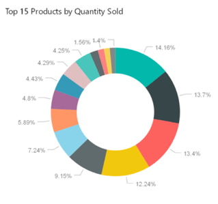 - “Top 15 Products by Quantity Sold”: we can see exactly which brands items are most popular, and which are least popular, based on volume of quantity: