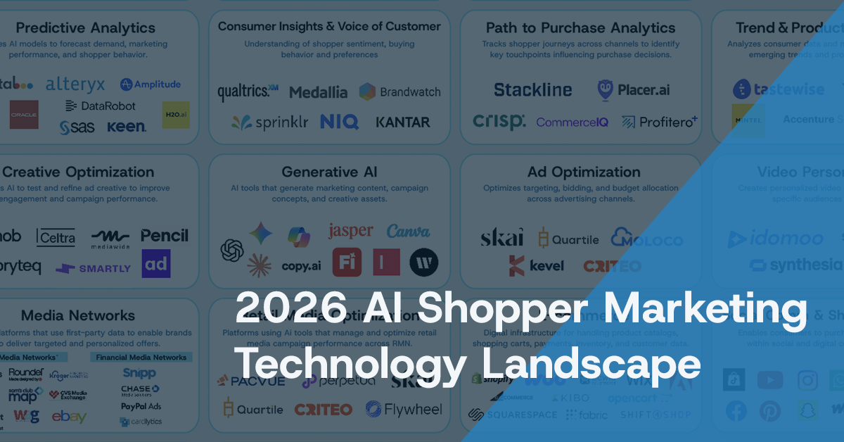 To help marketers navigate this rapidly evolving ecosystem, we created the 2026 AI Shopper Marketing Technology Landscape, highlighting the key categories and companies shaping the future of shopper marketing.