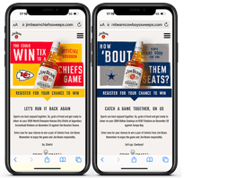 To enhance consumer engagement, Jim Beam launched two state specific register-to--enter sweepstakes, leveraging its NFL partnerships with the Kansas City Chiefs and Dallas Cowboys, offering fans the chance to win tickets to their favorite team's game. Consumers could register to participate at a Snipp developed age and state-gated microsite for a chance to win.