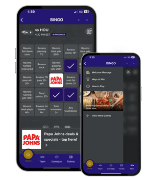 Papa Johns partnered with Sideline Sports to gamify the game-day experience through Ravens Game-day Bingo, an interactive in-app game that keeps fans engaged throughout every Baltimore Ravens match. Fans mark off key game moments for a chance to win signed Ravens memorabilia and Papa Johns rewards, including a grand prize of free pizza for a year. Integrated into the Ravens Game Center, the game is heavily promoted via push notifications, social media, and in-stadium activations, making it the most clicked-on feature in the app. By transforming fan participation into a reward-driven experience, the Ravens and Papa Johns have created a powerful engagement tool that boosts brand visibility, loyalty, and digital interaction throughout the season.