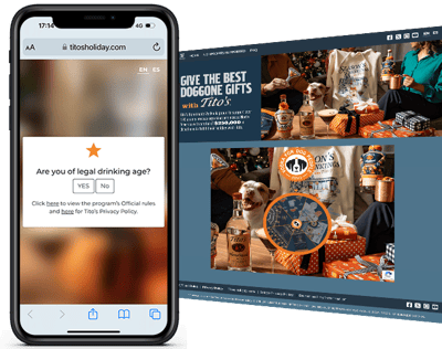 Tito’s Handmade Vodka launched an instant win gamification campaign to drive engagement during the holiday season, through a spin-to-win game where consumers could simply register at an age-gated Tito’s Holiday website for a chance to win one of five holiday-themed rewards, including Tito’s Ugly Sweaters (for humans or dogs), a dog toy kit, a dog blanket, an ugly stocking, and an ugly beanie. Winners were instantly notified, and participants were encouraged to return daily for another chance to win, keeping engagement high throughout the campaign.
