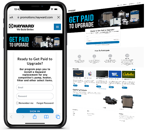 - The ability for installers to submit proof that they swapped out an existing pool pump for a Hayward brand to earn reward currency