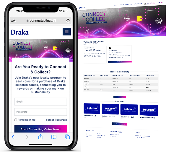 Snipp built a points-based loyalty rewards program to incentivize and reward installers to buy more product from Prysmian. The Draka Connect & Collect program is a rewards program for installers in the Netherlands who buy specific Draka electrical products from participating wholesalers. Installers earn points (called Coins) by uploading invoices at https://www.connectcollect.nl/en-NL (English), https://www.connectcollect.nl/nl-NL (Dutch) to show proof of purchase. The number of points they earn depends on the product type and the wholesaler they bought from. Once they have enough points, they can redeem them for rewards listed on the same website.