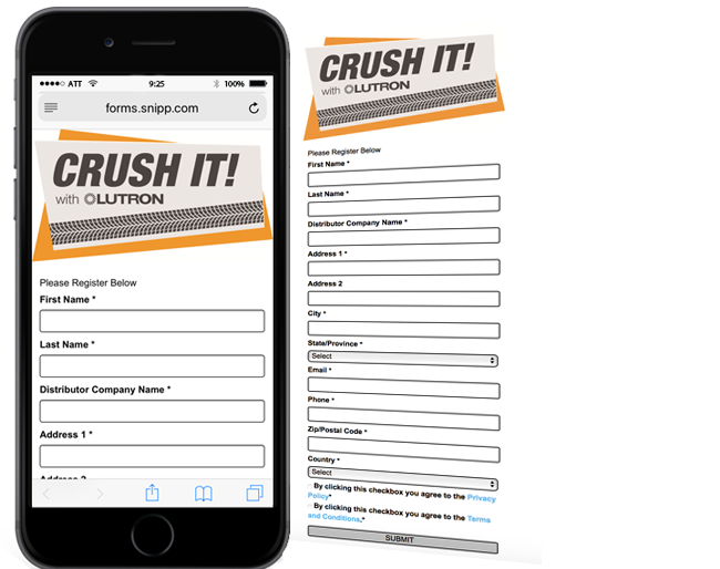 Before the launch of a gift-with-purchase program, Lutron needed a way to test the program to see how their sales reps would react to selling it to end consumers. Snipp created a distributor-facing phase, where sales reps could share a test site with distributors so that they can understand how easy it will be for contractors to participate in the upcoming program. Distributors can text LUTRON to 811-811 to receive a URL to a custom microsite page, to illustrate the convenience for the end consumer.