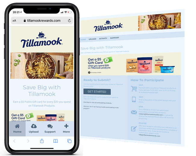 Tillamook leveraged Snipp’s frequency building digital punch card solution to develop a sales promotion where consumers could earn a $5 Publix Gift Card with a $20 spend on key Tillamook products. Consumers could earn in one or multiple shopping trips by sharing their receipts ( by texting the keyword CHEESE to 811811, via email to redeem@tillamookrewards.com or online via web. The client leveraged key learnings from the first flight to improve on the second campaign. During the receipt validation process, Snipp also is gathering data on other items in the basket to present brand and category affinities in a supplemental report.