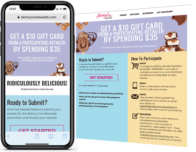 Snipp created a program where consumers who spend $35 across multiple transactions earn a $10 retail gift card if shopping at the 6 key accounts or a $10 VIP coupon if shopping elsewhere. In addition, Snipp created a Sweepstakes overlay for a chance to a trip to Hawaii, $250 Visa’s and VIP swag boxes. Consumers can simply text “Skinny Cow” to 811-811 to get started or visit web to submit receipts and learn more.