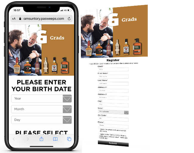 Snipp developed a text-to-get program on our receipt processing platform where consumers can text the keyword BEAMSUNTORY to 811811 to get a link https://beamsuntory.pasweeps.com/ to enter an engagement sweepstakes , offering gift cards and an experiential reward of a trip to a popular Pennsylvania resort. Incremental displays, used to drive sales, were secured throughout Pennsylvania State Liquor Stores.