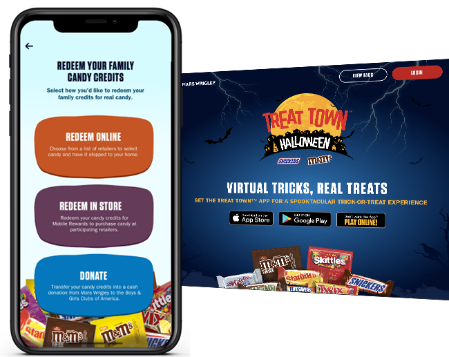 Mars needed a way to reward consumers with a digital reward to purchase only Mars SKUS in retail stores for their first-ever digital Halloween trick-or-treating experience ' TREAT-TOWN'