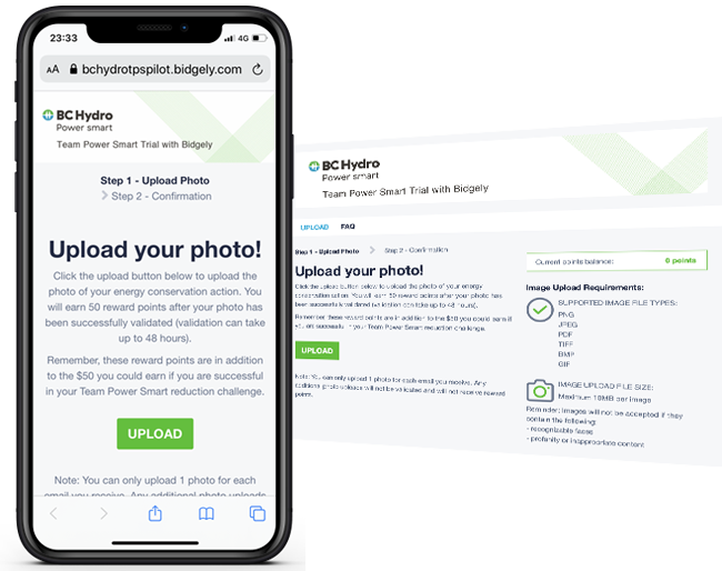 Partnering with Bidgely, a series of emails were sent to Team Power Smart members with hyper-personalized disaggregation tips encouraging homeowners to take behavioral energy efficiency actions to complete their challenge. Homeowners could take up to 8 photos of the recommended energy efficiency behaviors throughout their home and uploaded them to a Snipp-hosted microsite where the photos were automatically validated by the SnippCheck OCR technology for credit