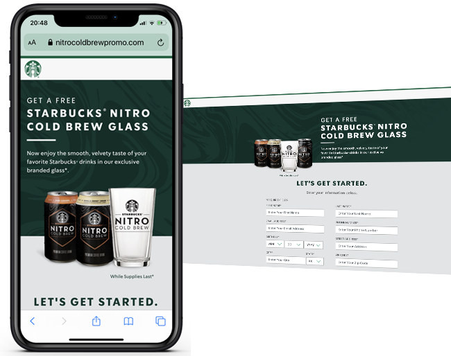 PepsiCo wanted to bring value to their partner, Starbucks, and incentivize sales of their new Starbucks Nitro Cold Brew. As well as bring traffic to a Walmart and Walmart.com with a retailer exclusive promotion.