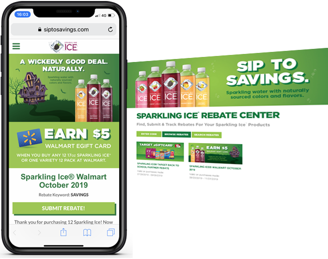 Leveraging the Sparkling Ice Rebate Center, consumers who purchase any twelve 17-oz Sparkling Ice or one 12-pack any flavor at Walmart (in-store only) in a single transaction can upload their receipt to receive a $5 Walmart e-Gift Card. Consumers can simply register and submit their receipt by texting SAVINGS to 811-811; by email to savings@siptosavings.com; or online at https://siptosavings.com/Walmart