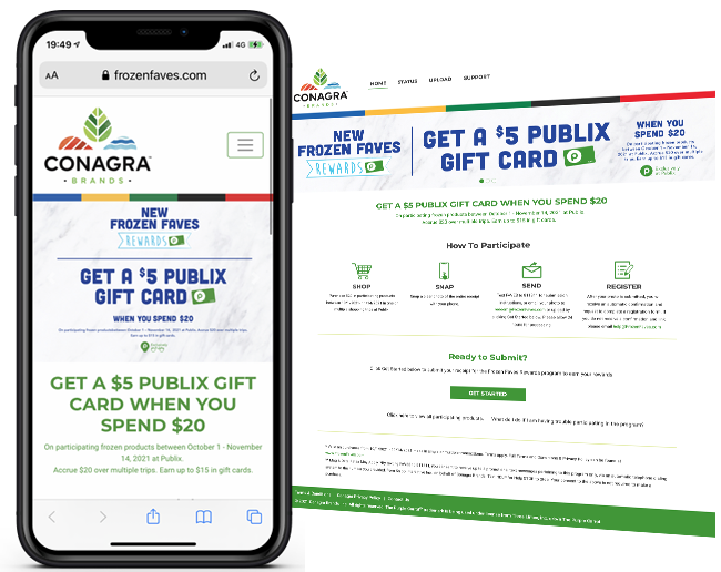 Conagra Frozen Faves was developed as a seasonal follow-on promotion to Frozen Rewards Club, a successful long-running program that drives sales of Conagra Brands at Publix stores by rewarding increased basket and frequency of purchase with Publix Gift Cards. Favorites like Healthy Choice® and Hungry-Man® were featured, along with new frozen innovations like Evol® and Purple Carrot®