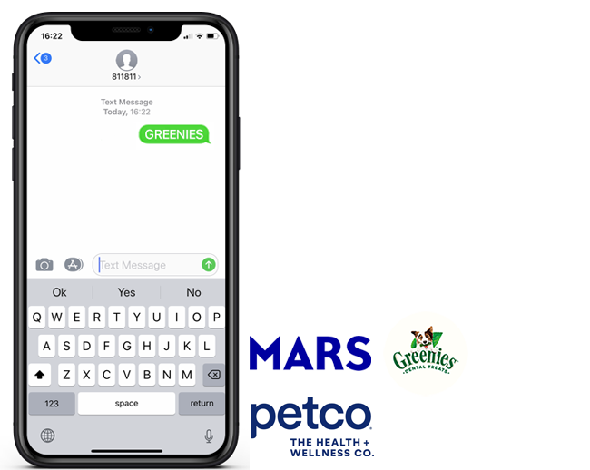 Snipp enabled Mars to run a gift with purchase program at Petco on our receipt processing platform where consumers who purchase $40 of Greenies products can upload their receipt by texting in the keyword GREENIES to get a $10 Petco e-Gift Card.