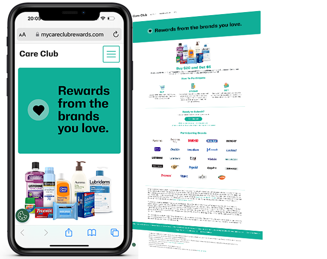 Snipp created a cash back gift with purchase program where customers who spent $20 or more in a single transaction across the portfolio could upload their receipt at https://www.mycareclubrewards.com/ to get a $5 Digital VISA Prepaid Card. Snipp hosted the entire solution, integrating it into Kenvue's Salesforce Marketing Cloud and CDP system in real-time to ensure they received the customer data to operationalize in their marketing tactics. Snipp also handled development of Terms & Conditions and digital reward procurement and fulfillment.
