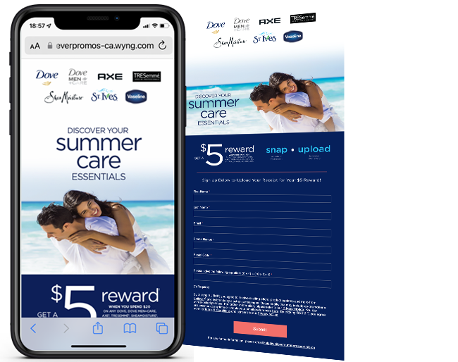 Snipp developed a GWP program where consumers who purchase $20 worth of qualifying Unilever products across their portfolio in a single transaction can upload their receipt at EN: http://www.unileversummeressentials.ca FR: http://www.essentielsdeteunilever.ca and get a $5 Digtial Pre Paid Mastercard!