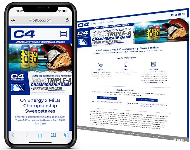 Leveraging Snipp's receipt validation technology, Nutrabolt developed a purchase-based gift with purchase program where consumers who purchased qualifying products in a single transaction could upload their receipt at https://www.c4energy.com/milb-championship-sweepstakes to get a $10 Fanatics code and an entry into the sweepstakes or a chance to win a trip to the 2024 Triple-A Championship Game! The Snipp built promotion microsite was integrated into the C4 website via an iframe. Snipp also implemented Mobile 2FA to prevent program fraud.