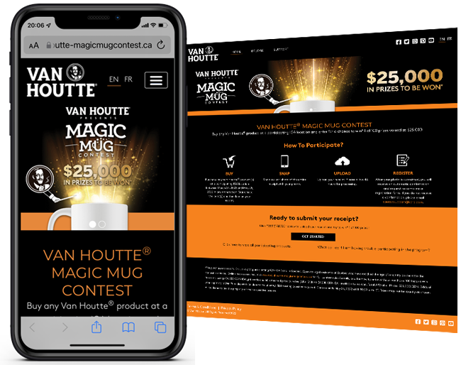 Snipp developed an instant win promotion where where consumers who purchased qualifying Van Houtte products could upload their receipt for a chance to win over 100 Instant prizes valued at $25,000!