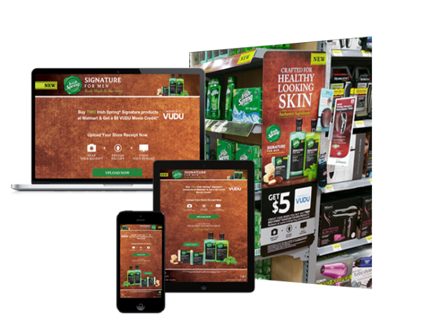 Consumers who purchase 2 Irish Spring products can simply snap a photo of their receipt and upload it to a custom branded Irish Spring platform to receive their reward. Consumers are rewarded with a VUDU download, allowing them to redeem for their choice of thousands of movies. Further, consumers have the chance to win additional bonus rewards, like a $5 Walmart gift card, and a chance to win a VIP ESPY experience.