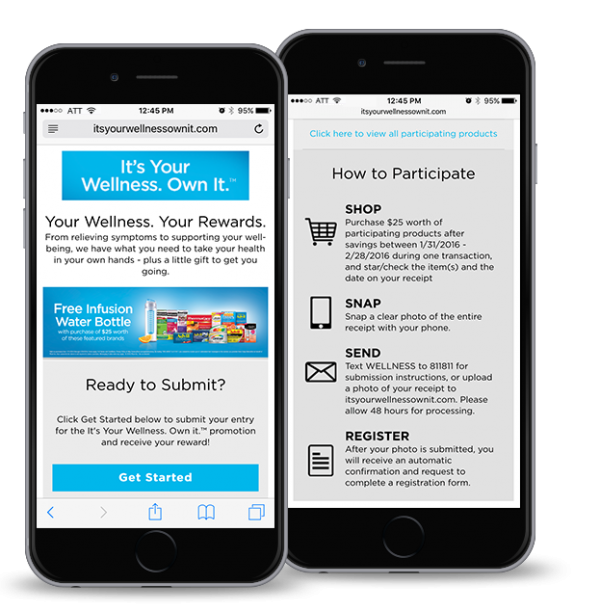 Consumers who purchase $25 or more before tax on qualifying products in one transaction can text the keyword WELLNESS to 811811 for submission instructions, or upload a photo of their receipt to itsyourwellnessownit.com. Post validation on the SnippCheck receipt processing platform they receive an infusion water bottle.