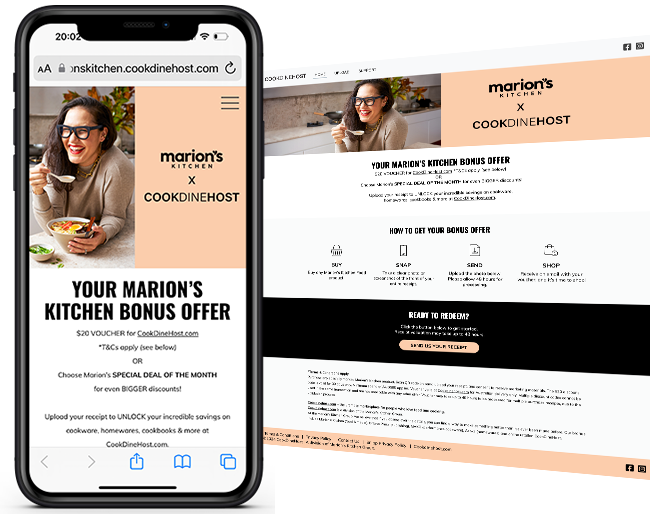 Marion's Kitchen wanted to increase brand awareness and sales by rewarding consumers with a $20 vouchers for their eCommerce site for every SKU purchased at any retailer in Australia.