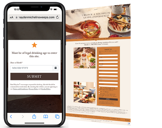 Snipp created a national sweepstakes program where consumers could register to enter for a chance to win on an age and state gated Snipp built microsite https://www.basilhaydenmichelinsweeps.com/StateGate. Entry also enabled via QR code on marketing material. Snipp managed the bonding & registration process, winner outreach, and verification process.