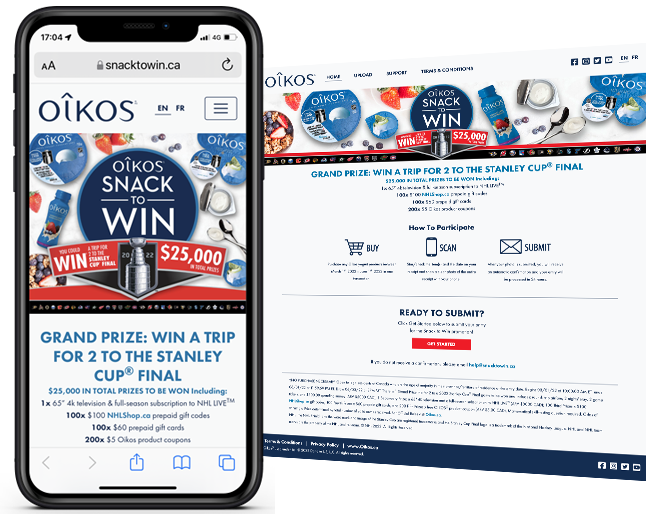 Danone was looking to develop an exciting promotion in partnership with the NHL to drive sales and promote their partnership. The Oikos "Snack to Win" campaign is one of Danone Canada's largest campaigns that they run every year.