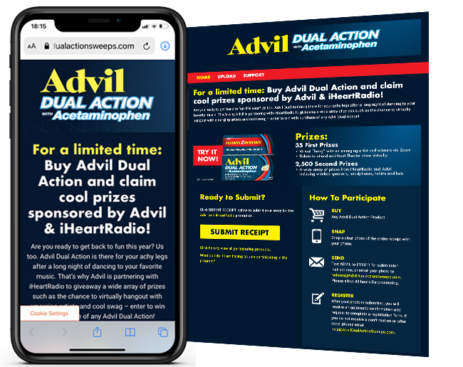 Partnering with Snipp was an easy way to bring the program to life quickly, leveraging Snipp’s turnkey promotion platform to activate and convert consumers both in-store and online. Using Snipp’s proprietary receipt validation technology, participants were able to earn a Sweeps entry with every Advil purchase.Consumers could simly submit their receipt by texting the keyword ADVIL to 811811, email to redeem@AdvilDualActionSweeps.com or online at https://www.advildualactionsweeps.com/