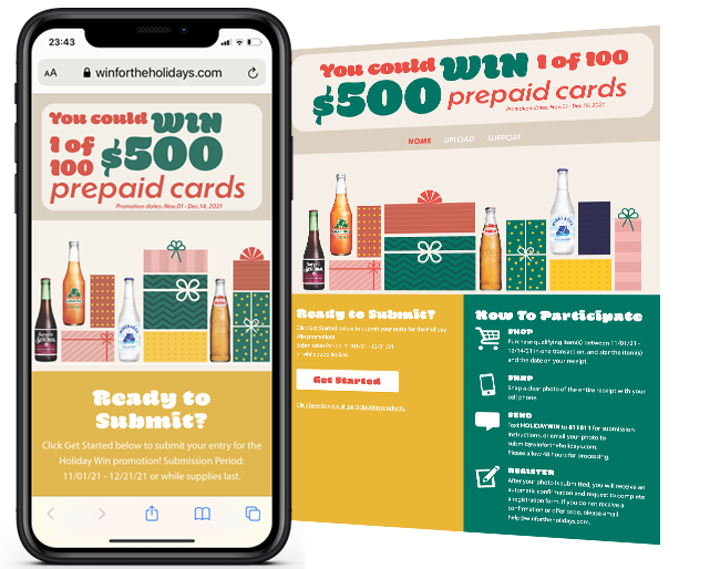 As the last program of 2021 of a Snipp 365 package, Snipp created a cross-portfolio sweepstakes promotion where customers could win one of one hundred $500 digital VISA prepaid cards. To gain an entry, customers simply purchased a participating Novamex product and submitted a photo of their receipt by texting in the keyword HOLIDAY WIN, via e-mail to submit@winfortheholidays.com or web upload at https://www.winfortheholidays.com/