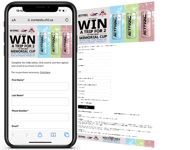 Keurig Dr Pepper was looking to promote the partnership between their non-alcohol cocktail brand Atypique and the CHL by developing a sweepstakes to incentivize consumers with a chance to win a trip for (2) to the 2024 Memorial Cup, as well as 10 secondary prizes.