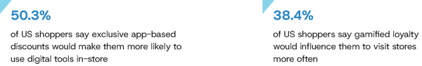 Rewards have to feel like real-life benefits. Shoppers increasingly want “soft benefits”: exclusivity, early access, and perks that signal the retailer understands real life, not just generic points tallies. In the US, over half of shoppers say exclusive app-based discounts would make them more likely to use digital tools in-store, and 38.4% say gamified loyalty—challenges, streaks, unlocks—would influence them to visit stores more often. Tesco's Clubcard Challenges invited members to complete personalized challenges over six weeks to unlock up to £50 in points, with challenge thresholds tailored to each participant. Its popularity led to later campaigns scaled to 10 million customers.