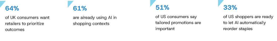 AI-powered personalization only earns trust when it delivers obvious value—saving time, effort, or money. In the UK, 64% of consumers want retailers to prioritize these outcomes, and 61% are already using AI in shopping contexts. The US market reflects the same shift: over half of consumers (51%) say tailored promotions are important, and comfort levels with AI tools are rising. Notably, Deloitte’s 2025 Holiday Retail Survey found that one-third of US shoppers are ready to let AI automatically reorder staples when supplies run low. Walmart is leaning into this readiness with its 'Stores of the Future', using AI to refine recommendations, enable 'endless aisle' browsing, and streamline the path from cart to doorstep. But privacy and bias concerns persist. AI earns trust only when it stays invisible and delivers clear value.
