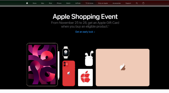 But it also understands the value of rewards and promotions. In the example below, Apple is offering a gift card with the purchase of an Apple product.
